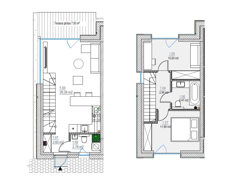 Plotas 61,1 m²