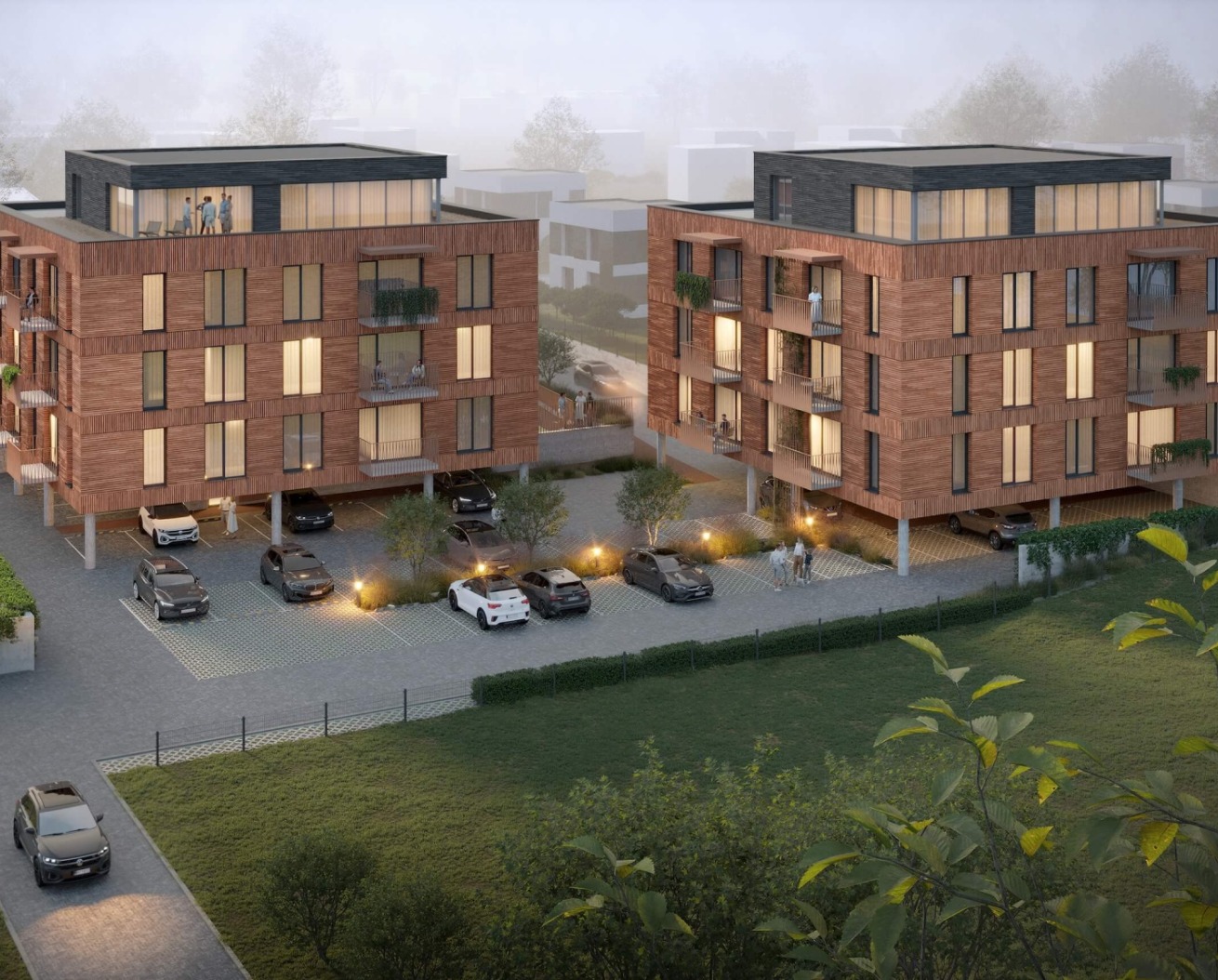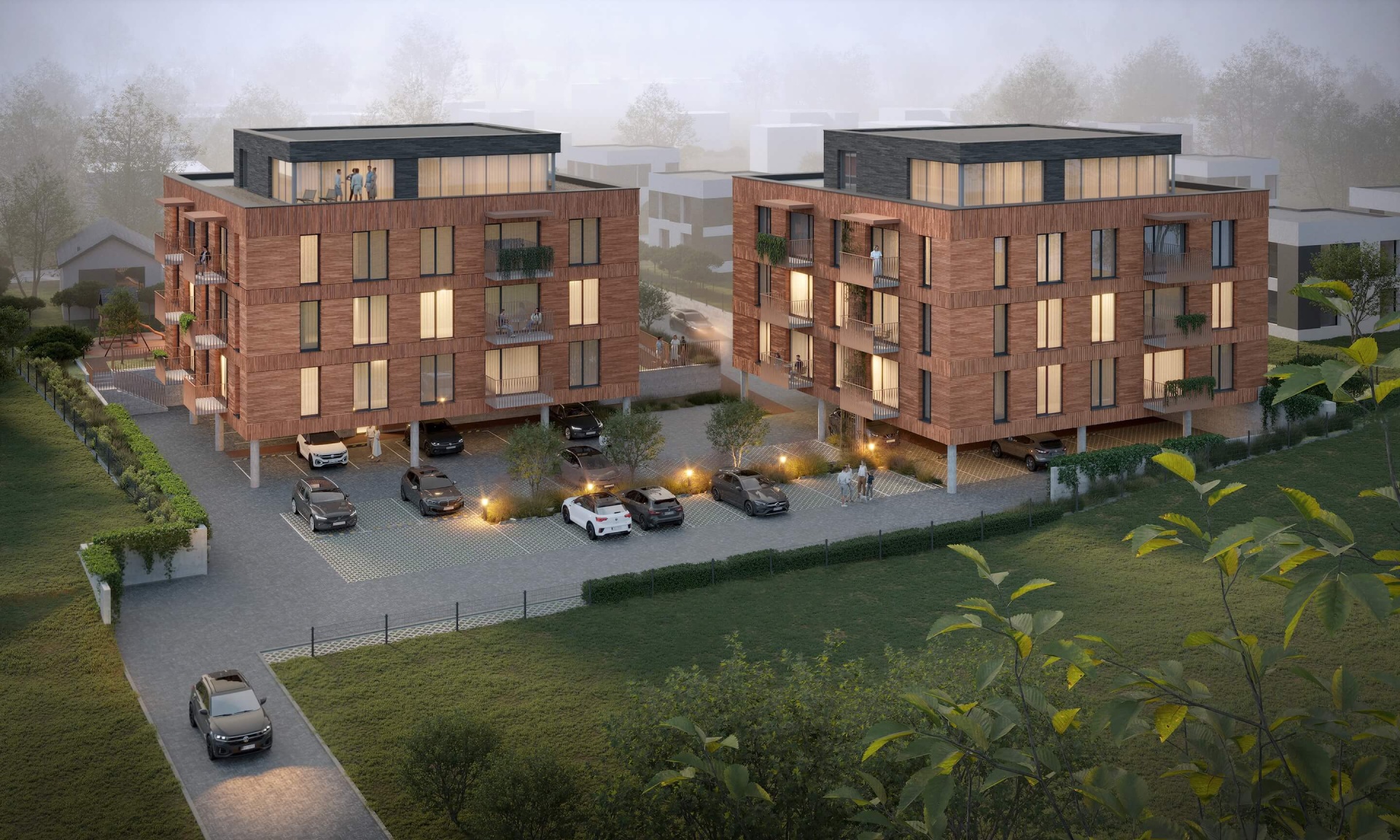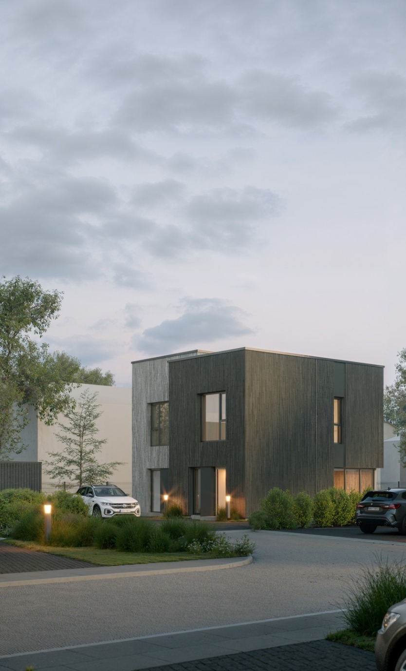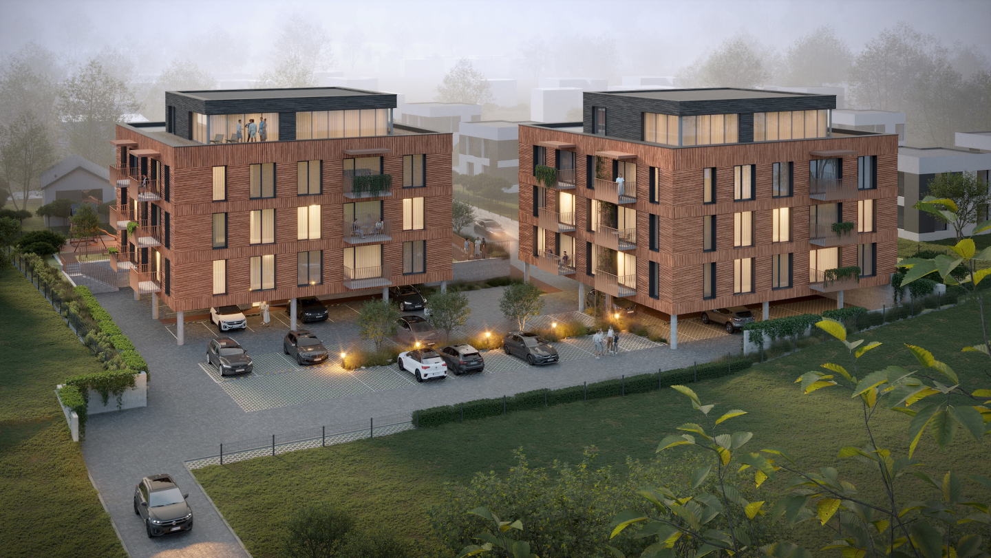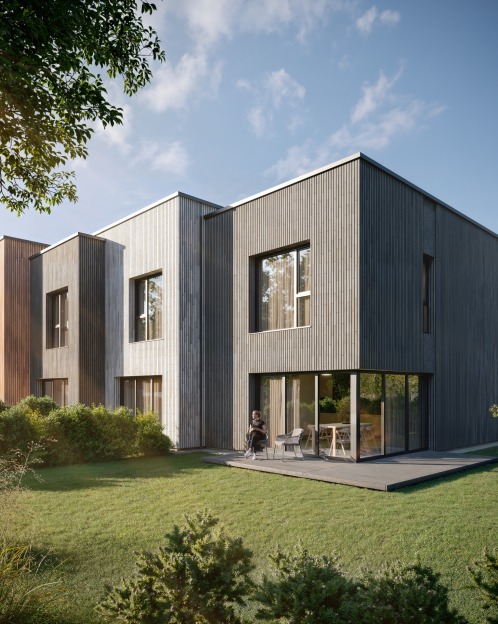 Kuriamas 9 dvibučių namų projektas išvystytoje gyvenvietėje, vos 350 m nuo prekybos centrų, kavinių, grožio salonų – ideali vieta patogiam ir šiuolaikiškam gyvenimui.
